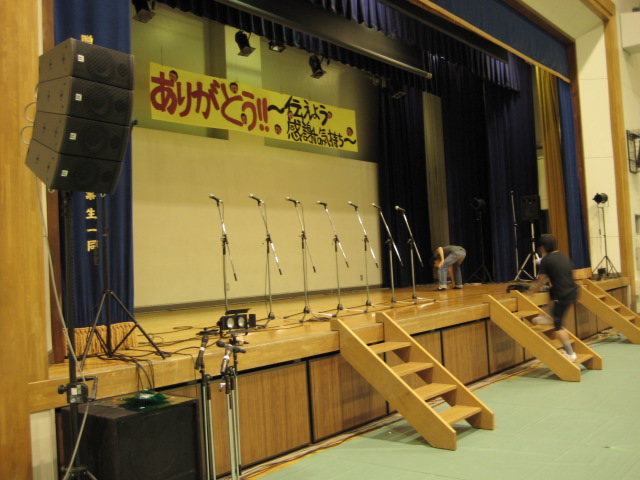 今日は、高校の文化祭仕込みとリハです。